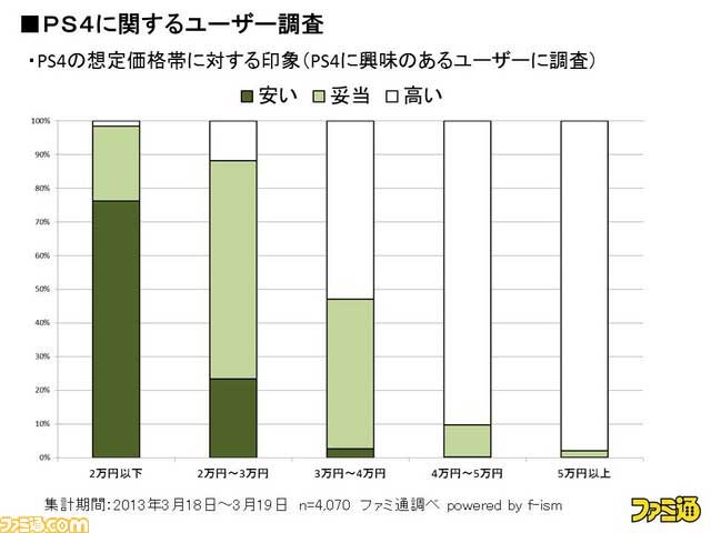 面白いのはPS4の価格に対するゲーマーの意識調査で、
