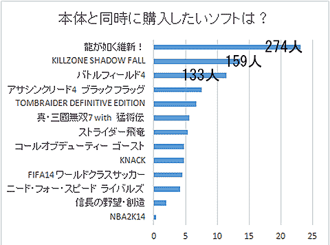 Q.同時に購入したいソフト1位:龍が如く維新! (274人)