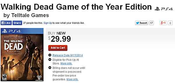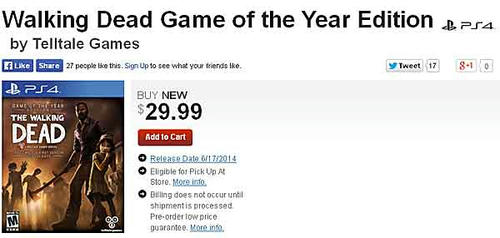 GameStopで新たに確認されたのは「Walking Dead Game of the Year Edition」。
