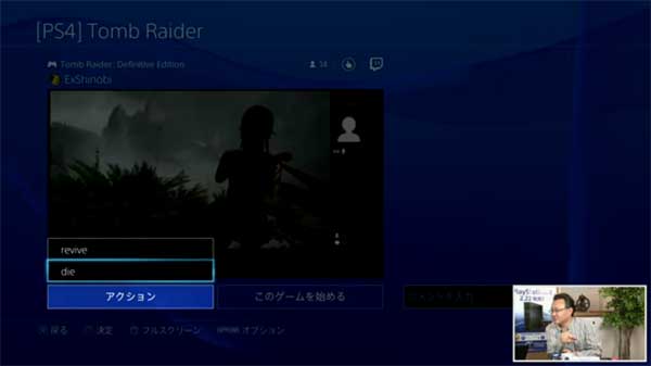 ▲「アクション」で視聴者がトゥームレイダーのプレイヤーがミスしたときに生死を決めたり、