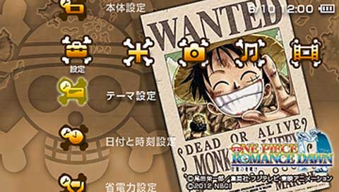 同梱されるPSP®本体には、麦わらの一味の海賊旗や仲間たちをモチーフにしたマークの他、天面に“隠れたつもりのチョッパー”のワンポイントイラストもあしらわれている。また、ソフトの初回封入特典に加えて、本商品には限定のカスタムテーマ1種も封入される。まさにファン必携のアイテムを見逃すな!
