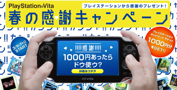 Vita購入者でアンケートに答えれば、1000円分のPSNチケットがもらえる。