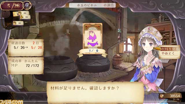 シリーズの醍醐味、「調合」が時間の制限なしにずっとし続けたり出来るといいなー。