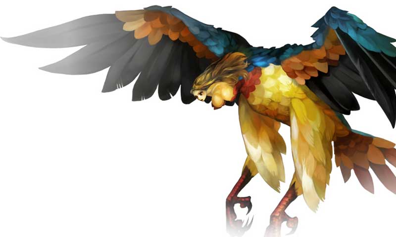 美しい娘の顔立ちをした、半分人間で半分鳥の怪物。その姿に見とれて、襲われる者が後をたたないという。哀れな犠牲者は巣へと運ばれ、雛の餌となる。古代神殿の遺跡に散らばる遺留品を玩具に、雛は狩りの練習をする。