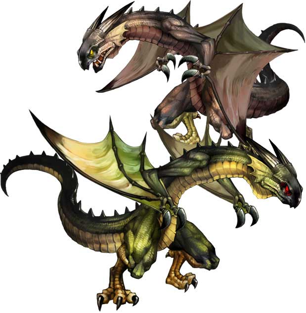 蛇のように滑らかな鱗のドラゴンだ、雄は緑、雌は煤けた赤色をしている。力の強い雄ほど、多くの雌を囲い、群れをつくる。知能が高く好奇心旺盛で、捕食の為だけでなく、遊びで狩りをすることがある。