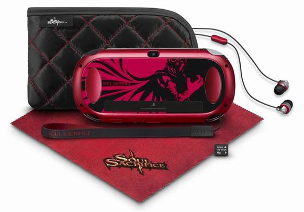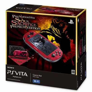 PlayStation®Vita Wi-Fiモデル 本体 ※『SOUL SACRIFICE』オリジナルモデル(本体色:コズミック・レッド)、PS Vitaカード版『SOUL SACRIFICE(ソウル・サクリファイス)』、メモリーカード(4GB)、インナーイヤーヘッドセット(コズミック・レッド)、オリジナルポーチ、オリジナルクロス、オリジナルストラップ