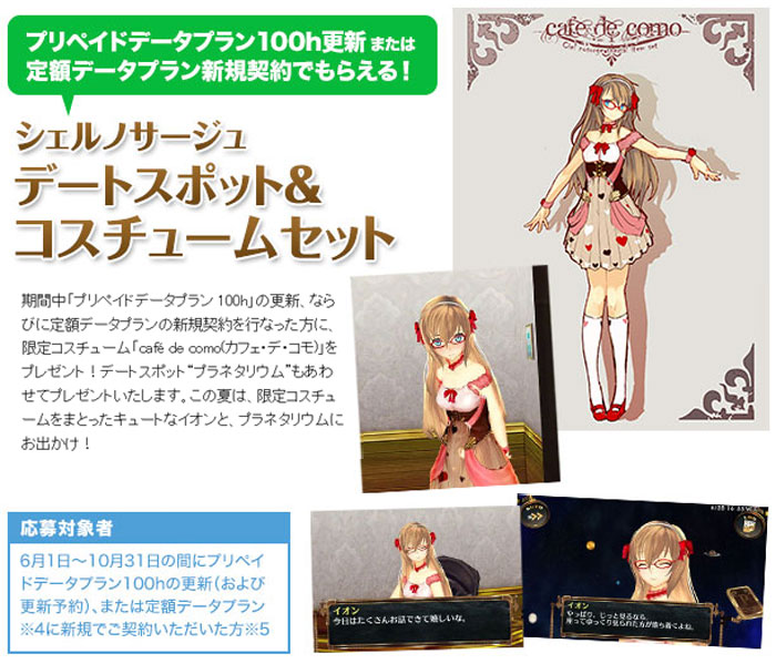 さらにデートスポットプラネタリウムが20時間と100時間それぞれの契約でもらえるようだ。