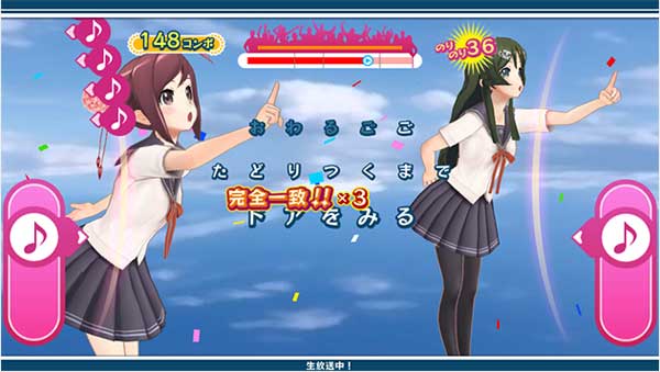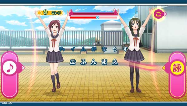 五七五の歌詞を複数の候補から組み合わせて前面/背面タッチを駆使してキャラクターに歌ってもらうリズムゲームで、ボタン操作無しの連打はちょっとやりにくい。