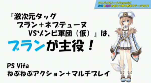 本作は、昨年行われた“ゲイムギョウ界総選挙”の結果から、投票数1位のブランを主役にした、マルチプレイ可能な“ねぷねぷアクション”。タイトル名から、戦う相手はゾンビ軍団になるようだが……? http://dengekionline.com/elem/000/001/022/1022134/