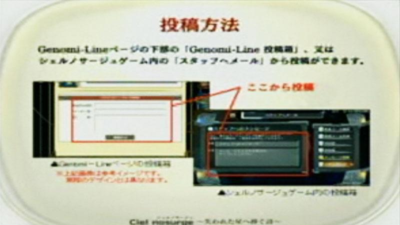 ▲投稿方法はジェノミライン投稿欄かゲーム内の「スタッフへメール」から投稿出来る。