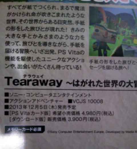 PSVita「Tearaway」テラウェイ国内公式サイトオープン! 紙のキャラをカスタマイズ!