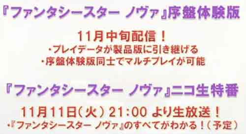 PSVita「ファンタシースターノヴァ」引継ぎ可能な序盤体験版が11月中旬配信決定! 11/11にニコ生特番放送!