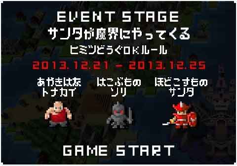 【魔界にイベント勇者が攻めてくるぞー!】記念すべき第1回目のイベントは、クリスマスをモチーフにした勇者が登場します。クリアしたポイントがランキングに反映され、レアなアイテム(魔物)を獲得することができますので、この機会に是非ご参加ください。