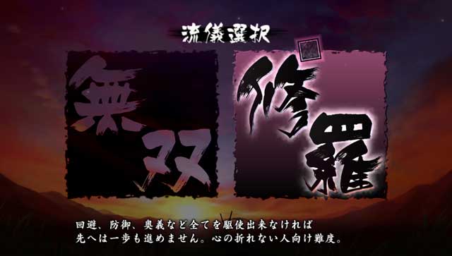 ▲難易度はイージーモードの「無双」とハードな「修羅」を選択できる