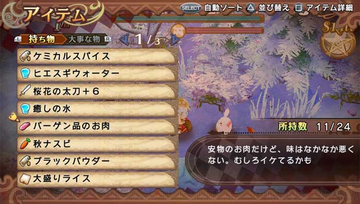 ▲カレーの具材集めも本作の目玉。「具材」「穀物」「スパイス」の3種を集めて新たな効果のカレーを作る。