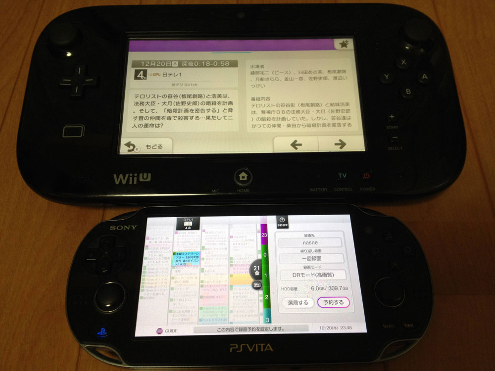 ※画像は上2点はWiiUゲームパッドとの比較で、2枚目は録画予約のインターフェイスですね。