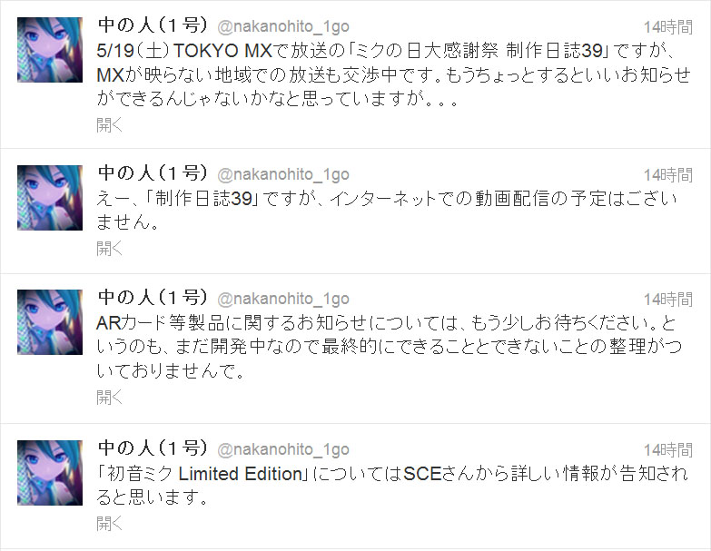 ▲5/19(土)の「ミクの日感謝祭 製作日誌39」(MX)はネット配信の予定はない