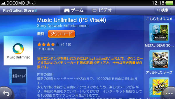 米Sony Entertainment Network(SEN)は9日、PlayStation Vita向けに、定額制音楽配信サービスの「Music Unlimited」を開始すると発表した。