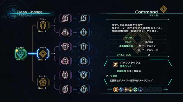レベルとは別にクラスが存在、アーツの獲得傾向が変わる