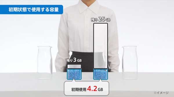▲ベーシックセットは約3GB、プレミアムセットは約25GBの空き容量がある。