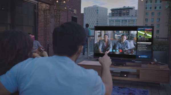 音声コマンドによる簡単起動、テレビ連動でNFLを鑑賞、スカイプもシームレスにといった内容。