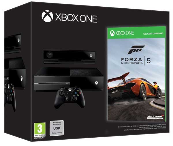 11月22日に主要13ヶ国で発売が決まったXboxOneのDay One Edition (発売当日分)のみに無料でソフトが1本付くという欧州限定同梱版に新たに「フォルツァ5」が登場。
