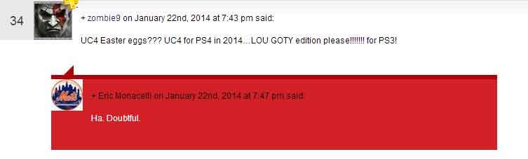 「アンチャ4の2014年内発売と、ラスアスGOTYエディションをPS3にお願い!」